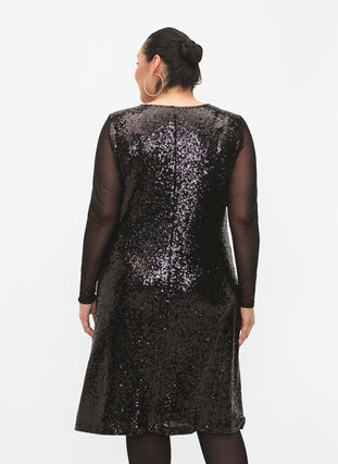 A-formad paljettklänning med långa ärmar