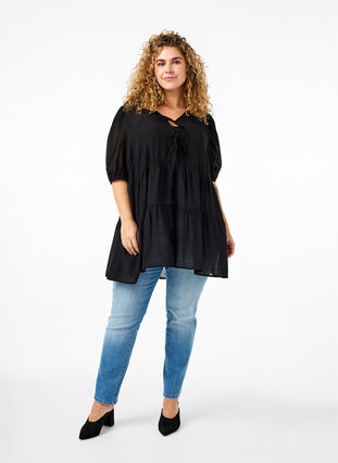 Letar du efter tunikor i stora storlekar? På Zizzi hittar du allt från en neutral svart tunika i plus size till färgglada tunikor och långa tunika klänningar. Sommaren handlar om färg och vackra tunika klänningar! Uppdatera din garderob med en vacker tunika i viskos med vackert fall. Bär den över dina jeans eller som en klänning under soliga dagar med dina favoritsmycken och sandaler. Lätta upp din outfit med en tunika i plus size för alla årstider - det är enkelt med en tunika. Lägg bara till ett par leggings eller tights så är du redo.