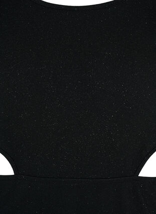 Ärmlös klänning i stretchigt material med glitter. Klänningen är kort med en slits i sidan och har trendiga detaljer med utskurna partier i sidorna.