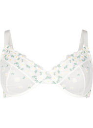Balconette-BH med bygel, justerbara axelband och vackert blomsterbroderi på lätt transparent mesh. BH:n lyfter och framhäver bysten med mindre täckning och har höga sidopaneler samt stadigt mesh i kuporna för extra stöd och optimal passform.