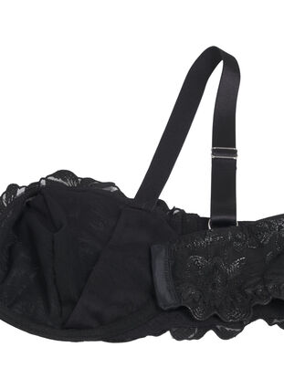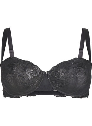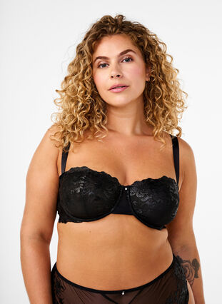 Feminin balconette-BH i mesh med vacker broderad spets och en subtil glansig effekt, samt en strassdetalj mellan kuporna. BH:n har bygel, justerbara axelband och höga sidopaneler för maximal komfort, medium support och mindre täckning för en elegant look.
