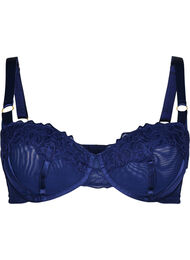 Elegant balconette-BH med bygel och breda, justerbara axelband och höga sidor för maximalt stöd. BH:n är tillverkad i mjuk mesh med feminina spetsdetaljer och satinband på kuporna. BH:n är designad med ett extra lager mesh på sidan av kuporna, vilket ger bra stöd och lyfter bysten.