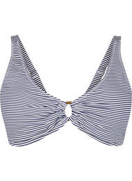 Bikinitopp med dekorativ ringdetalj mellan kuporna och en snygg randig textur. Toppen har justerbara axelband, innertyg i mesh framtill för extra stöd, urtagbara vadderingar och mjukt foder bak. Tillverkad i ett slitstarkt och klorresistent material som ger lång hållbarhet och färgbeständighet.