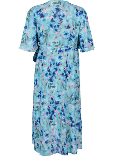 Blommig omlottklänning med korta ärmar