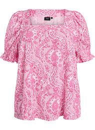 Blus i viskos med paisleymönster och fyrkantig halsringning
