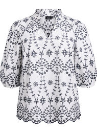 Blus med 3/4-ärm och broderie anglaise-detaljer