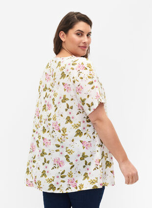 Kortärmad blus med rund halsringning. Blusen har en löst sittande a-linjeform med ett fint tryck.
