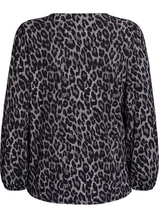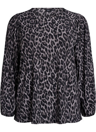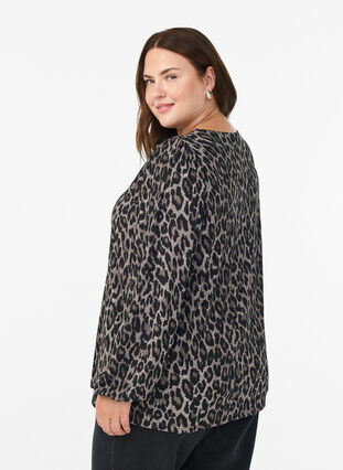 Blus med långa ärmar och leopardmönster