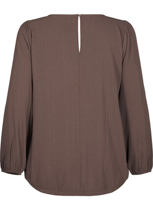 Vacker blus i enkel design med silverglitter och tillverkad i ett lättviktsmaterial med 55% återvunnen polyester. Blusen har en rund halsringning som försluts med en knapp bak i nacken och avslutas med elastiska ärmar och fåll för en vacker ballongeffekt.