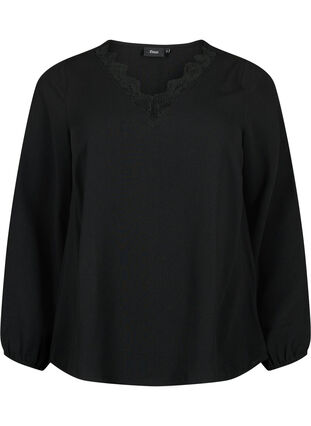 Blus med V-ringning och spets