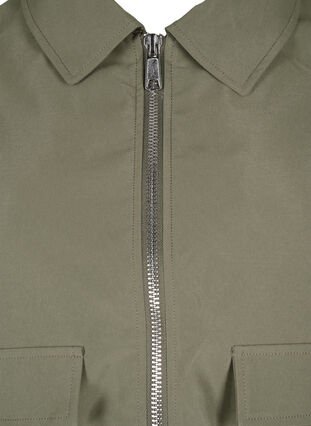 Kort bomberjacka med krage, fickor med lock framtill och knappförsedda ärmslut. Jackan har dragkedja i metall framtill och en bred elastisk kant nedtill som ger en ledig och avslappnad passform.
