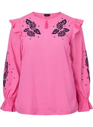 Bomullsblus med broderier och volanger