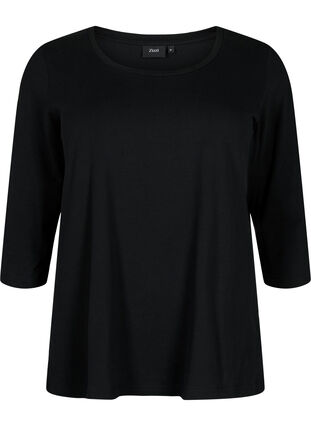 Enkel och skön baströja med 3/4-ärmar. Tröjan är tillverkad av ett bomullsmaterial med stretch och har en rund halsringning.