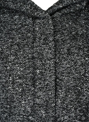 Mellanlång kappa med extra stor huva, dold dragkedja framtill och passpoalfickor i sidorna. Kappan är tillverkad i en vacker bouclékvalitet med ull.