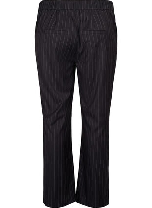 Snygga byxor i kritstrecksrandig design med lös passform. Byxorna har sidofickor, bälteshällor, resår bak och knappstängning fram.