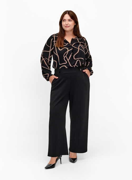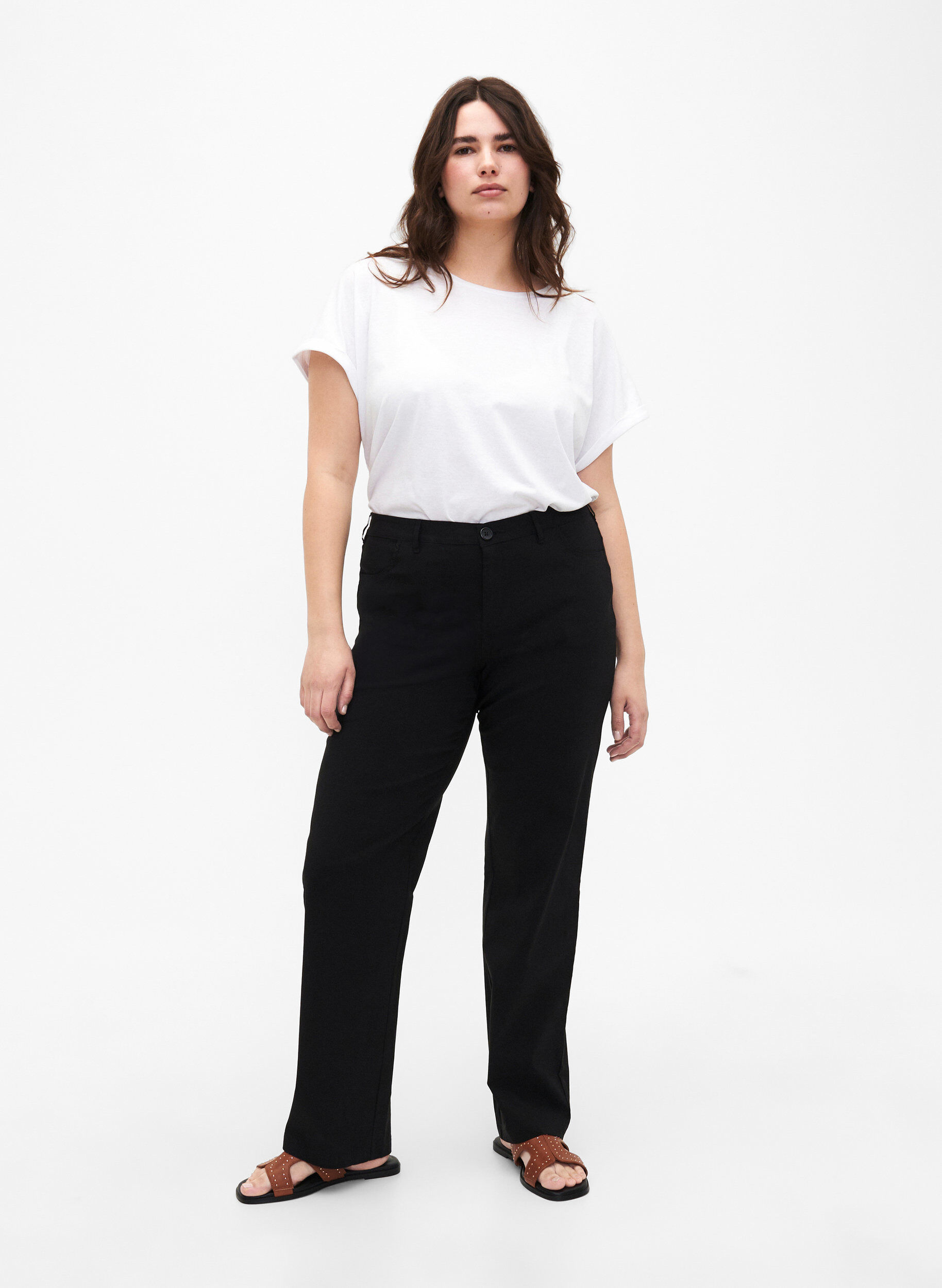 Hos Zizzi hittar du byxor i stora storlekar med klassiska snitt, kostymbyxor och lösa, vida byxor som följer de senaste trenderna. Styla dina trendiga byxor med en klassisk skjorta och en kavaj för en mer formell och elegant look, eller en långärmad topp för en avslappnad look.