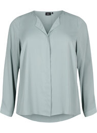 Enkel och klassisk skjorta med långa ärmar och V-ringning. Skjortan har en dold knäppning på framsidan och en lös passform med en slits i sidan.