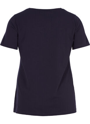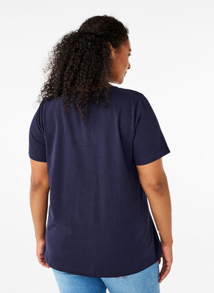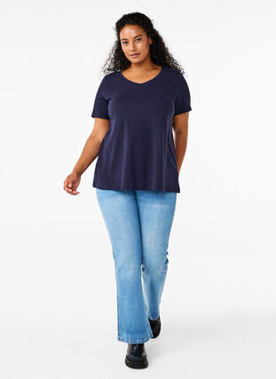 Enfärgad bas-t-shirt färg med korta ärmar. T-shirten är tillverkad av ett mjukt bomullsmaterial, har en v-ringad hals och en bekväm passform som sitter löst.