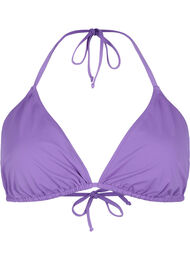 Enfärgad triangelformad bikiniöverdel med tunna snören som knyts elegant i nacken och ryggen för en justerbar passform och en feminin touch. Bikiniöverdelen är tillverkad i ett klorresistent och slitstarkt material för långvarig hållbarhet samt färgbeständighet och är fodrad med mesh för stöd.