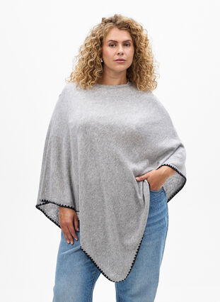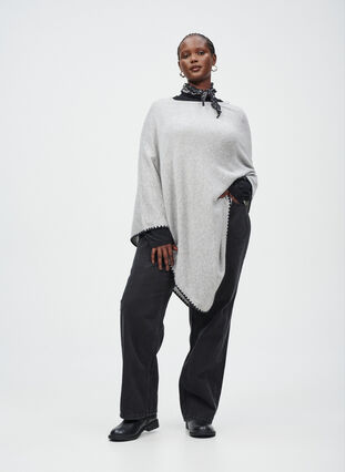 Finstickad poncho i en mjuk och skön materialblandning med viskos och ull som ger värme och komfort under kyliga dagar. Stilen har rund halsringning och en lös, rymlig passform med asymmetriskt snitt. Perfekt som ett lätt lager över toppar eller klänningar under övergångssäsongerna.