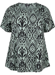 Kortärmad blus med rund halsringning. Blusen har en löst sittande a-linjeform med ett fint tryck.