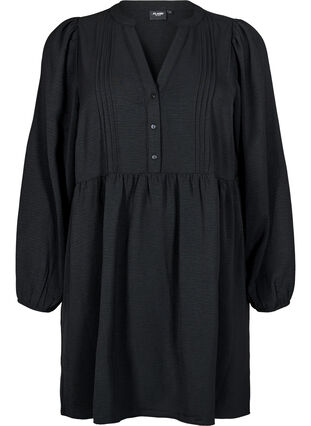 FLASH - Kort klänning med plissering och långa ärmar