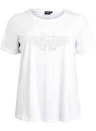 Snygg t-shirt med trendigt motiv på bröstet. T-shirten har normal passform med rund hals och korta ärmar.