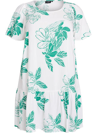 Kortärmad löst sittande klänning med rynkat axelparti, rund hals och en urringning nedtill som skapar en vacker a-formad silhuett. Den här klänningen innehåller 100 % LENZING™ ECOVERO™ Viscose-fibrer som ger naturlig mjukhet och drapering.