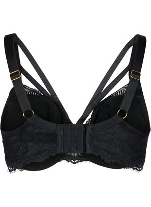 Bh med bygel med klädd yta och feminin spets i ryggen. BH:n är designad med band över bröstet och har justerbara axelband.