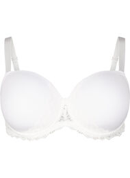 BH med bygel och formpressade kupor som ger en slät och rund siluett. BH:n har breda, justerbara axelband med U-formad rygg för att hålla banden på plats, samt höga sidopaneler för maximalt stöd. Den är tillverkad i en kombination av mikrofiber och mesh baktill och är dekorerad med vackra spetsdetaljer mellan och under kuporna.
