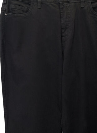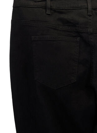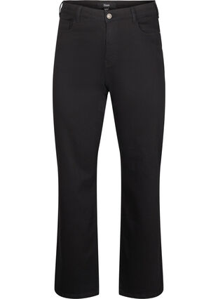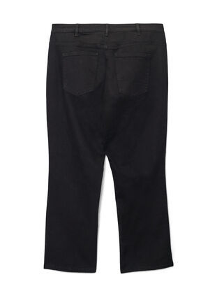 Jeans med hög midja och bälteshällor, samt gylf med dragkedja och knapp. Jeansen har en åtsittande passform runt höften och en lös passform från lår till benslut, tillverkade i en stretchig bomullskvalitet.