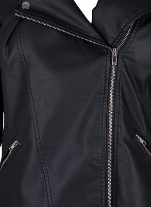 Snygg bikerjacka i läderimitation med dragkedja. Jackan har dekorativa sömmar, krage och slag samt sidofickor med dragkedja.