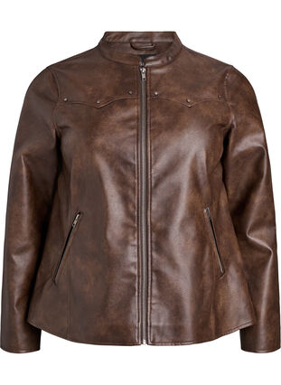 Jacka i läderimitation med nitar och fickor