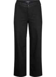 Jeans med hög midja i skön bomullskvalitet med stretch. Jeansen har klassiska bälteshällor och bakfickor samt har en lös passform från knät och nedåt.