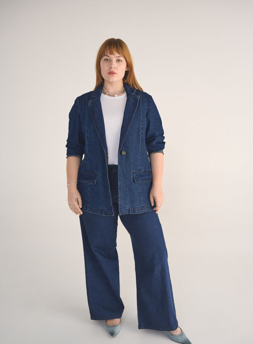 Jeanskavaj med en klassisk och avslappnad look. Kavajen har en normal passform med en enkelknäppt knappstängning, slag och fickor med lock framtill, vilket ger den en stilsäker och tidlös look. Den mjuka jeanskvaliteten gör kavajen bekväm att bära, medan sprundet baktill ger extra rörelsefrihet. Perfekt att styla med jeans eller vardagsbyxor för en cool, koordinerad outfit.