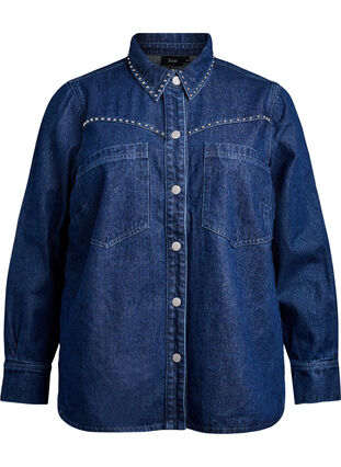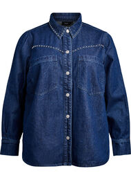 Snygg jeansskjorta med dekorativa nitar längs krage och ok, vilket framhäver den westerninspirerade designen. Skjortan är i en kraftig bomullsblandning och har långa ärmar och normal passform, vilket gör den lika snygg att bära som den är eller öppen som en overshirt. Den har bröstfickor, tryckknappar framtill och i ärmsluten, samt en klassisk krage. Ett stilsäkert val för vardagsbruk och lager-på-lager-looker.