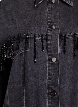 Snygg jeansjacka med lös och bekväm passform. Jackan är dekorerad med pärlfransiga detaljer på bröstet och ryggen, vilket ger en elegant touch. Den har en klassisk krage, knäppning framtill, bröstfickor och sidofickor.
