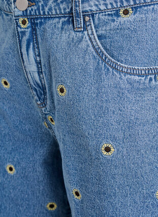 Jeansshorts i 100 % bomull med fina broderade blommor och en klassisk design med fickor och bältesöglor. Dessa shorts har hög midja och ett resårband på insidan som justeras med knappar.