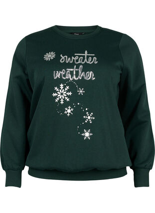 Snygg långärmad sweatshirt med ett mysigt julmotiv på framsidan. Sweatshirten har rund halsringning och dekorativa ribbstickade kanter.