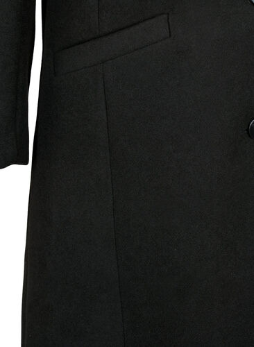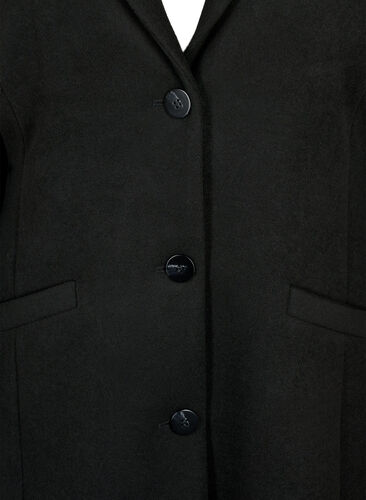 Vacker ullkappa i tidlös design. Kappan har klassisk krage och kavajslag, sidofickor och knappstängning fram.