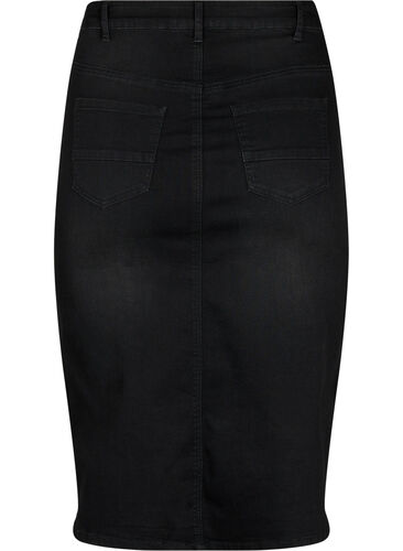Vacker och trendig midikjol i jeans som är gjord i en vacker bomullsblandning. Kjolen har en kroppsnära passform, fickor, bälteshällor och en snygg slits på framsidan.