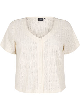 Kofta med korta ärmar, rund halsringning och knäppning framtill. Koftan har normal passform och är tillverkad i en mjuk jerseyskvalitet med struktur.