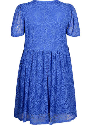 Feminin spetsklänning med foder i mjuk viskos och korta ärmar med elastisk kant. Klänningen har V-ringning, elastisk skärning i midjan med lös passform undertill och en dold dragkedja i sidan som gör den lättare att ta på.