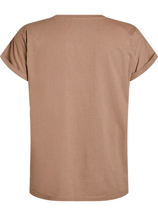 Lång och bekväm t-shirt i mjuk bomullsblandning. T-shirten har en rund halsringning och korta ärmar med uppslag.