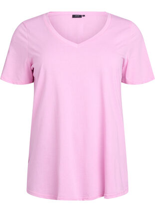 Enfärgad bastopp i mjuk bomullsblandning, med korta ärmar och v-ringning.