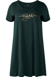 Bekvämt nattlinne i 100 % ekologisk bomull med ett enkelt tryck. Nattlinnet har korta ärmar som kan rullas upp, rundad halsringning och en A-linjeformad lös och bekväm passform.
