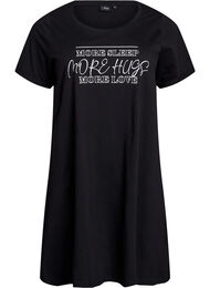 Bekvämt nattlinne i 100 % ekologisk bomull med ett enkelt tryck. Nattlinnet har korta ärmar som kan rullas upp, rundad halsringning och en A-linjeformad lös och bekväm passform.