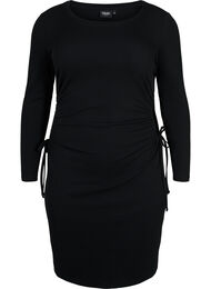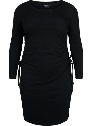 Kroppsnära klänning som är tillverkad i en stretchig, ribbad kvalitet. Klänningen har en trendig detalj med ett utskuret parti och justerbar dragsko på sidorna, vilket ger en cool look.