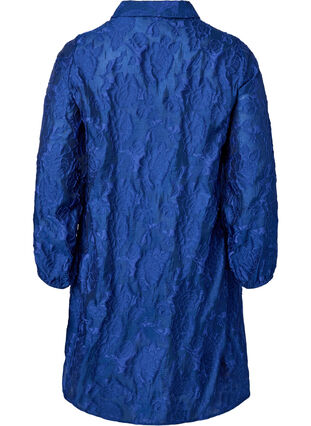 Lång skjorta i vacker blommig jacquard kvalitet med lös passform. Skjortan har en klassisk skjortkrage och långa ärmar med resår i ärmsluten för en lätt puffeffekt.