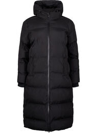 Lång puffervinterjacka med huva